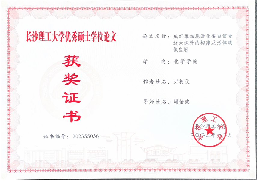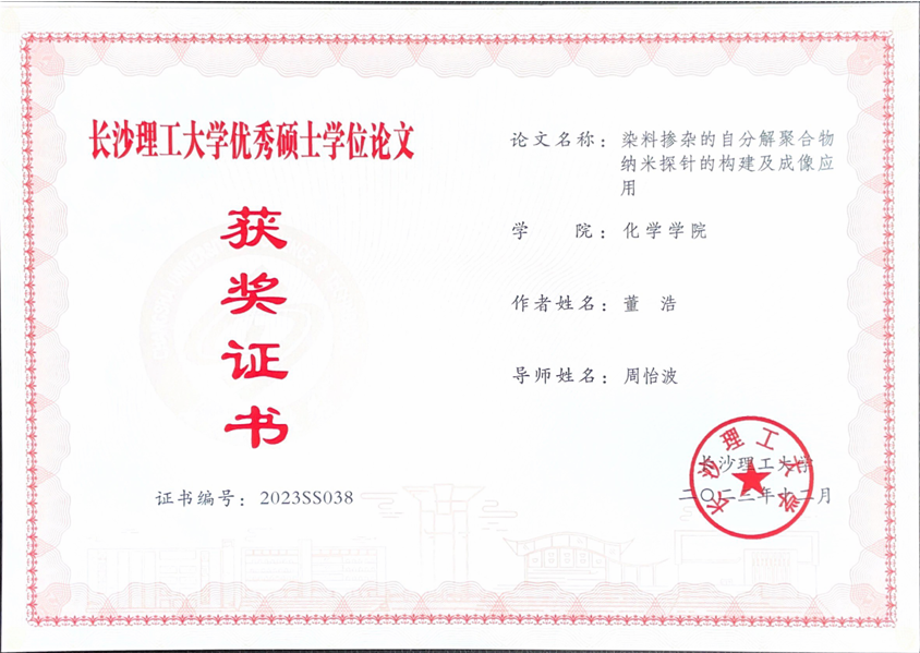 获奖等级:湖南省化学化工学会第十八届青年化学化工奖