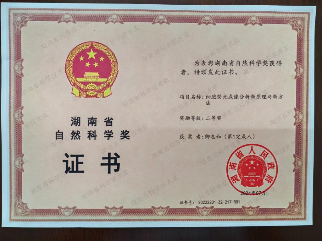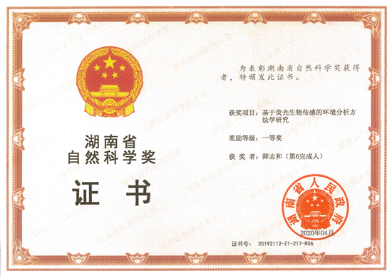 获奖等级:湖南省自然科学奖 二等奖
