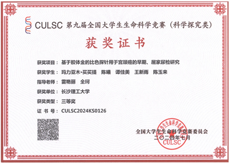 获奖等级:第三届全国大学生化学实验创新大赛华南赛区三等奖