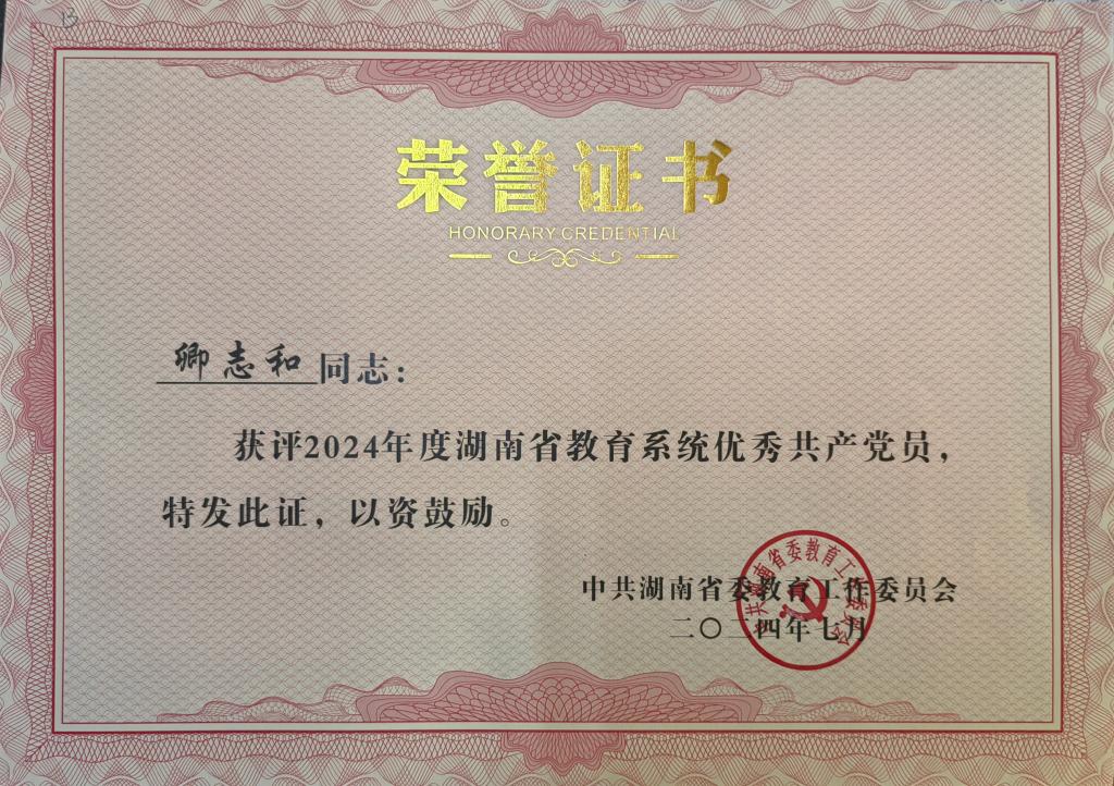 获奖等级:湖南省教育系统优秀共产党员