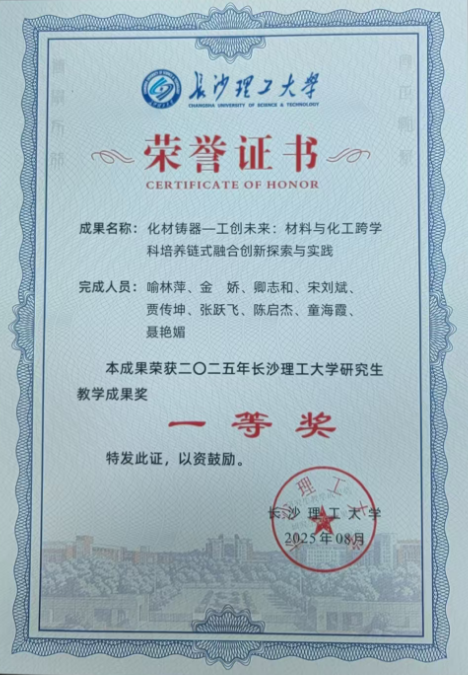 获奖等级:化材铸器-工创未来:材料与化工跨学科培养链式融合创新探索与实践 一等奖