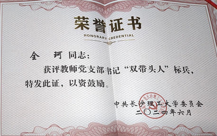 获奖等级:“优秀党支部书记”荣誉称号