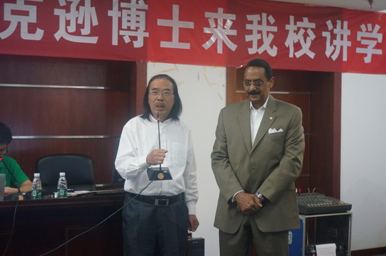On October 16, 2014, Dr. Edward Jackson Jr, President of ArchD Consulting Co., Ltd from America and Mr. Lei Yixin, an internationally renowned sculptor jointly presented a lecture to all new students about Martin Luther King sculpture in the library on Yuntang Campus.