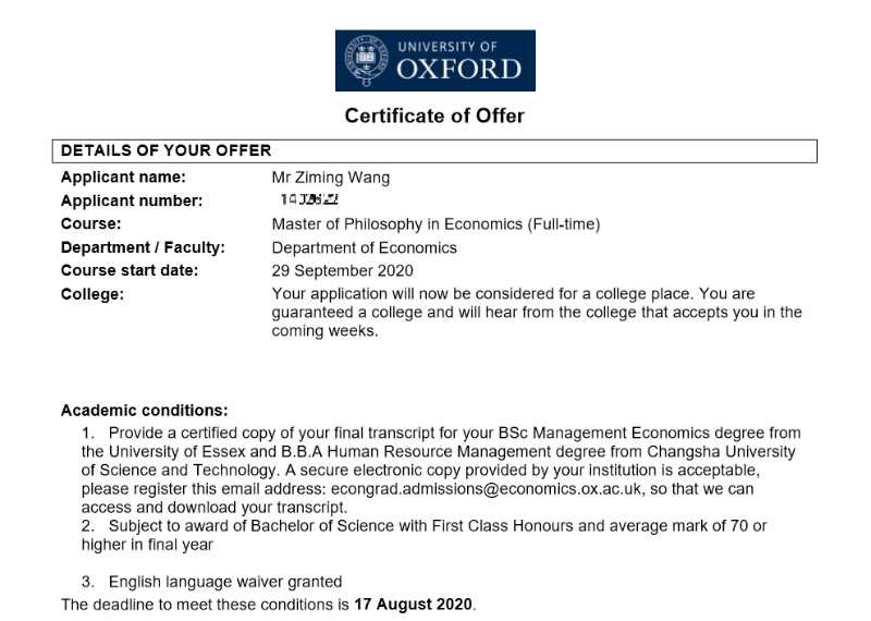 Wang Ziming, a 2020 graduate of CSUST, has got offers for graduate students from the University of Oxford (ranked first in the world by Times Higher Education in 2020), the University of Cambridge (ranked third in the world by Times Higher Education in 2020), the University College London, London School of Economics and Political Science and other internationally renowned universities.