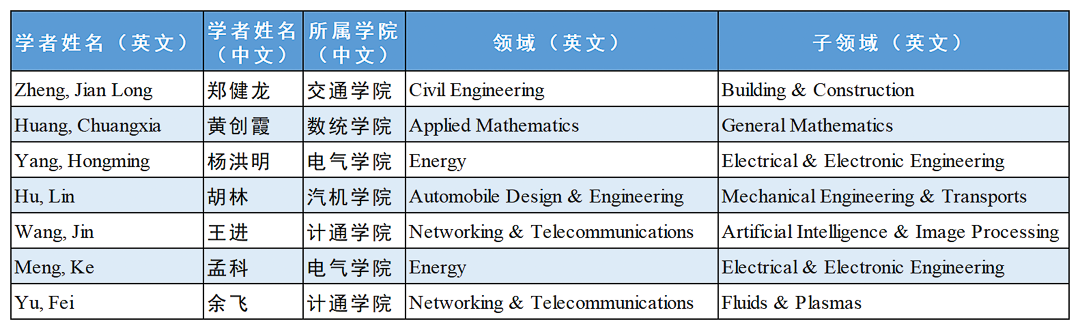 Seven Scholars Listed Among Top 2% World's Leading Scientists in light of "Lifetime Scientific Influence Ranking”