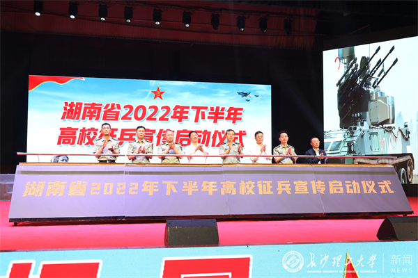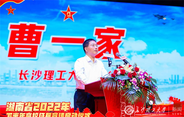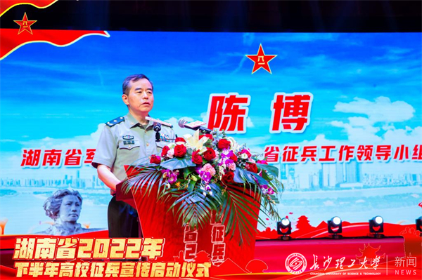 5月18日上午,湖南省2022年下半年高校征兵宣传启动仪式在XK星空云塘校区大会堂隆重举行。湖南省军区副司令员、省征兵工作领导小组副组长陈博出席活动并讲话。长沙市委常委、常务副市长、市征兵工作领导小组组长彭华松,省军区动员局副局长、省征兵办副主任徐赞军,省教育厅二级巡视员李纪武,长沙市警备区司令员刘长进、政委冯紫英以及天心区政府有关领导,校长曹一家出席活动。