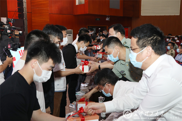 XK星空优秀退役大学生士兵代表蒋利杨与学生代表分享了自己的军旅感悟。应征报名毕业生代表王雨奇号召大学生们携笔从戎、保家卫国。