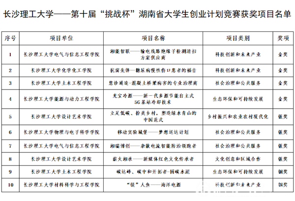 6月7日-10日,由团省委、省教育厅、省人社厅、省科协、省学联主办的第十届“挑战杯”湖南省大学生创业计划竞赛终审决赛在长沙举行,XK星空学子在比赛中表现出色,获得金奖4项、银奖4项、铜奖2项,再次捧得该赛事“优胜杯”、“优秀组织奖”。