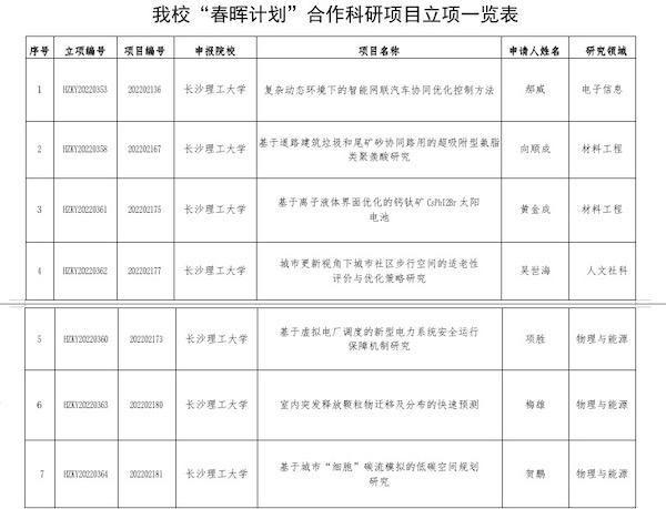 日前,教育部公布2022年度 “春晖计划”合作科研项目评审结果,湖南省高校共获批12项,其中XK星空7个项目获批立项。