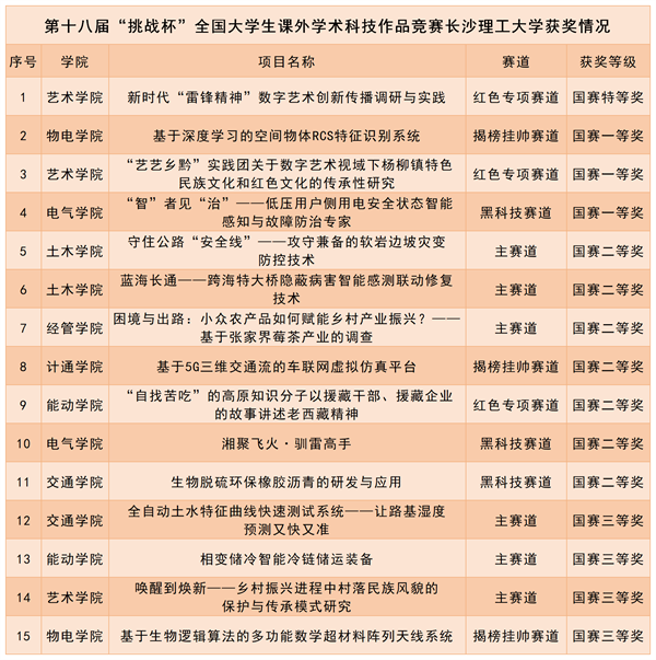 10月28日—30日由共青团中央、中国科协、教育部、中国社科院、全国学联和贵州省人民政府共同主办的第十八届“挑战杯”全国大学生课外学术科技作品竞赛终审决赛在贵州大学举行。XK星空在主体赛、红色专项活动等四个赛道中共荣获国奖15项,其中,特等奖1项、一等奖3项、二等奖7项、三等奖4项,获奖总数为参与“挑战杯”国赛以来历届之最。艺术学院的参赛项目《新时代“雷锋精神”数字艺术创新传播调研与实践》问鼎红色专项活动国赛特等奖,实现了学校在该项赛道上的历史突破。