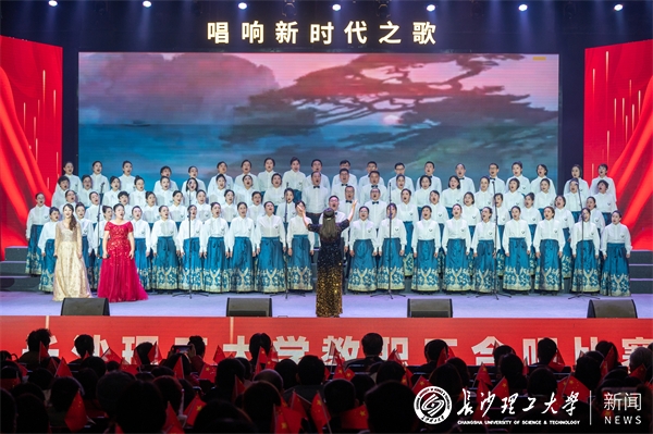 “拂去岁月厚厚的封尘,敞开心的世界记忆的闸门,一副副一帧帧不能忘却的画卷引领着我默默地前行……”合唱比赛在校教师合唱团《追寻》的悠扬歌声中拉开序幕。12支教职工合唱队伍着装统一、精神饱满、依次登台、激情歌唱,共同唱响新时代之歌。表演者用歌声传递爱国爱党爱教爱校之情,以饱满的热情,将声乐与朗诵等其他表演艺术完美结合,为观众带来一场精彩纷呈的视听盛宴。《天路》《在太行山上》《我爱你中国》《祖国不会忘记》《领航》《走向复兴》《我的祖国》《军民团结一家亲》《唱支山歌给党听》《XK星空校歌》……一首首经过各参赛队精心准备,脍炙人口的经典歌曲,气势磅礴、催人奋进,讴歌了中华民族伟大复兴的奋斗历程,唱出了教职工对祖国的无限热爱,传递出新时代长理人面向未来、共筑中华民族伟大复兴中国梦的坚定信心和良好的精神风貌。