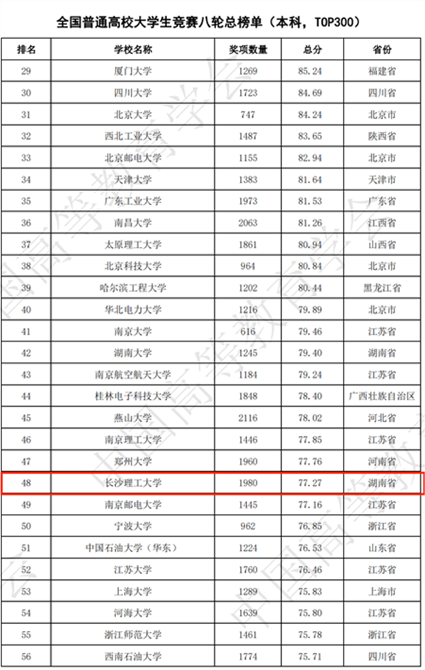 全国高校学科竞赛评估结果榜单每年发布一次,是国内第一个专注高校创新人才培养暨学科竞赛成果的排行榜,竞赛评估从获奖贡献、组织贡献和研究贡献三个方面的竞赛数据进行排行。2023年,全国共有1218所本科院校进入本科榜单。