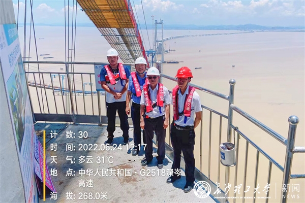 中国工程院院士郑健龙针对工程建设的关键技术难点和重大技术方案提供技术咨询,为工程高质量建设保驾护航。土木工程学院李传习教授团队参与的上海同济检测技术有限公司、XK星空联合体,承担了深中通道桥梁工程第三方施工监控II标段涉及中山大桥、横门东西泄洪区、浅滩区非通航孔桥的大跨径钢箱连续梁桥等监控工作。工程建设过程中,团队充分发挥科研优势,在中山大桥大节段超宽钢箱梁吊装匹配高差调整、万顷沙60m钢箱梁分幅分片架设等专项施工技术上提供的重要优化建议,为项目的品质工程建设提供了有力的支持与保障。该学院多名教师还承担了深中大桥西锚碇人工岛稳定性及基坑开挖施工安全信息化监测,以及深中大桥悬索桥主缆一般索股线形视觉测量技术研究等工作。
