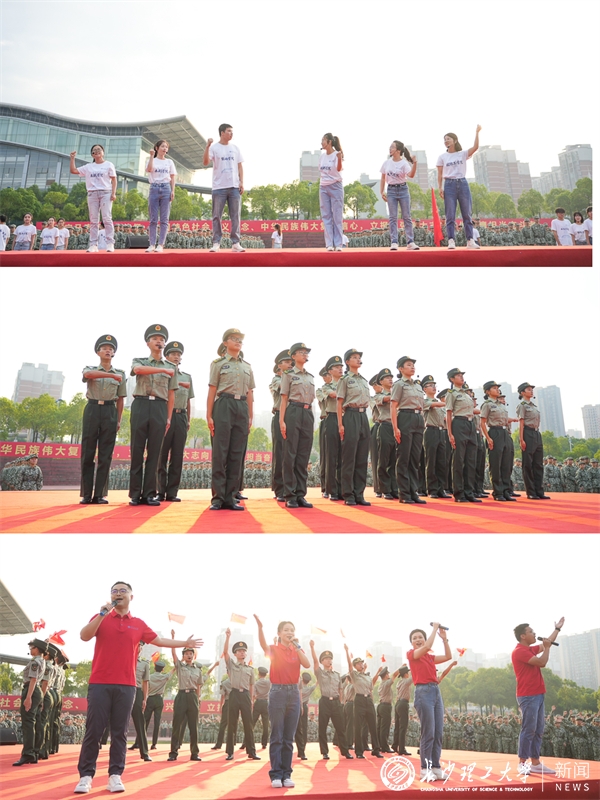 典礼开始前,民兵连同学齐唱《祖国不会忘记》,在“9·18”这个特殊的日子里,勉励同学们共同铭记历史、不忘国耻、珍爱和平、开创未来在《红旗飘飘》慷慨的歌声中,巨幅国旗在新生队列中接力传递。新生纷纷用双手触摸国旗,感受与祖国的血脉相连,向祖国深情告白。