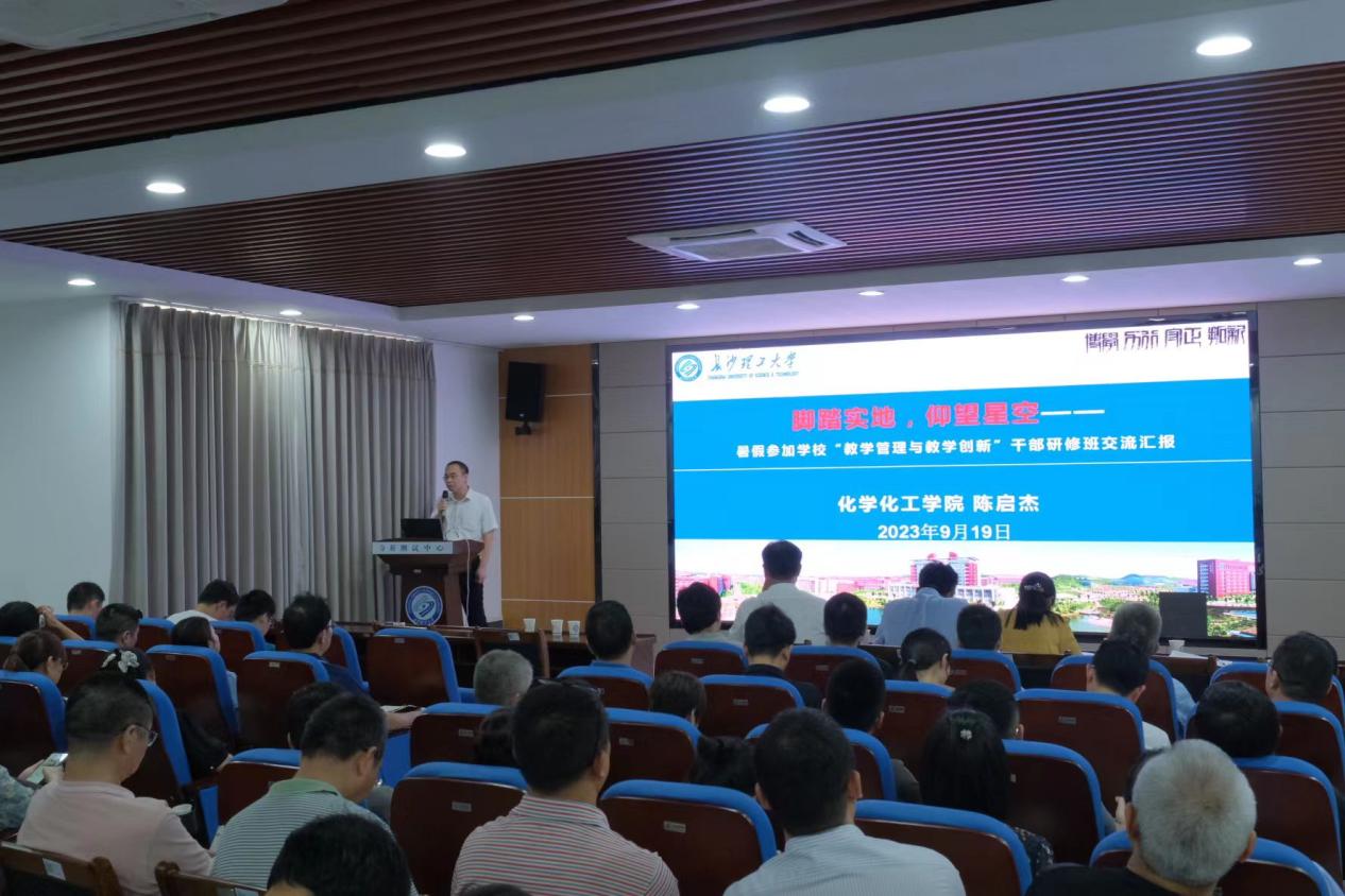 副院长陈启杰传达了学校本科教育教学诊断性评估的专家反馈意见,从多个角度带领全体老师共同学习了本科教育教学审核评估的特点、基本原则、工作目标、指标体系框架,审核评估的重点、对象、条件、周期以及程序。并结合XK星空及我院基本情况、办学定位,解释了XK星空选择“第二类第一种”的理由,达成共识。随后以“脚踏实地、仰望星空”为题,对暑假在四川大学参加学校“教学管理与教学创新”干部研修班的学习体会进行了交流。