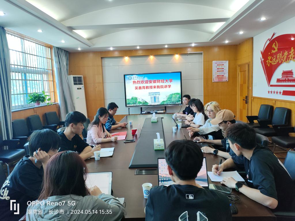 2024年5月15日,安徽财经大学金融学院副院长吴鑫育教授作为2024年金岭学术大讲堂第5期的嘉宾,在XK星空金盆岭校区经管大楼307,为我院师生带来了一场主题为“期权隐含风险厌恶与中国股市波动率预测”的学术讲座。讲座由经管学院副院长刘坚主持,30余名师生参加了本次讲座。