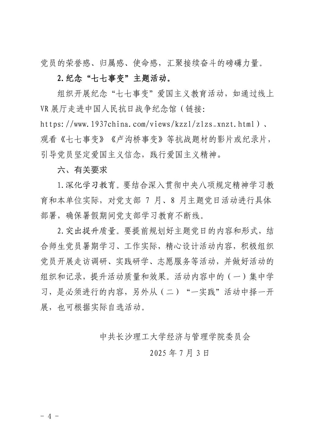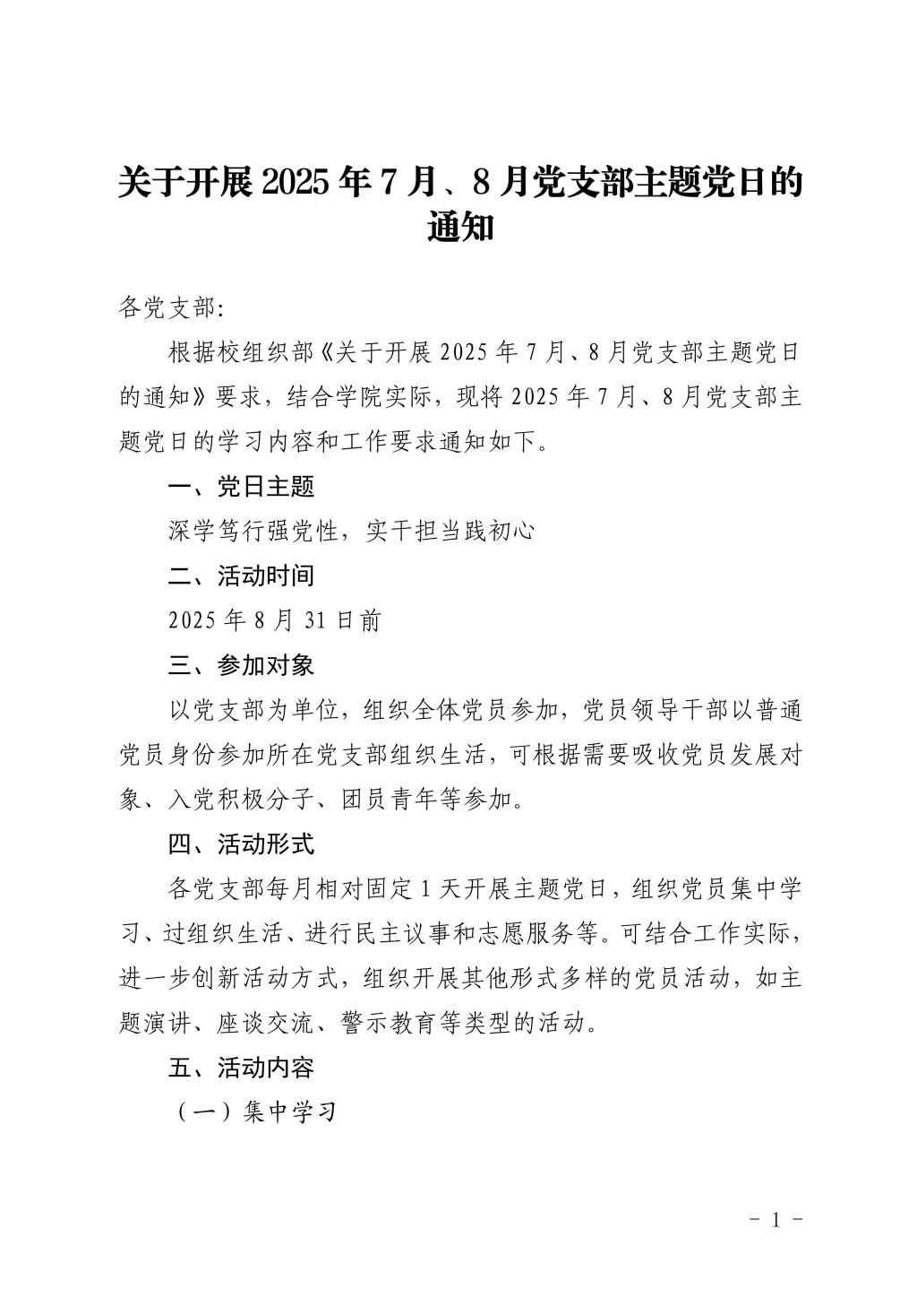 关于开展2025年7月、8月党支部主题党日的通知