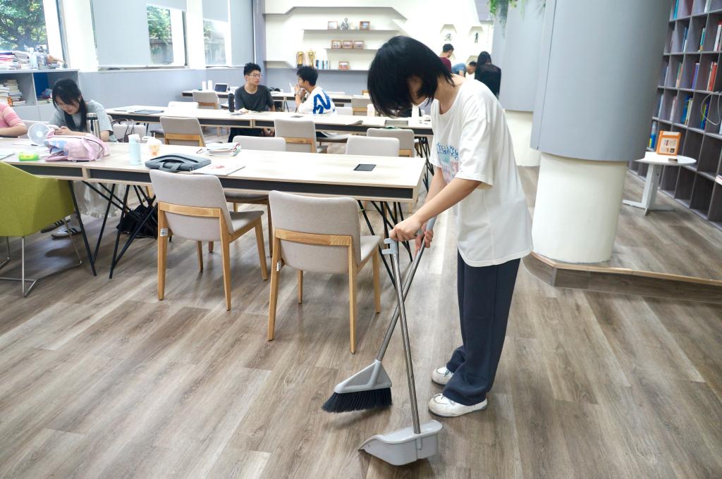实践课伊始,学员们按照分组提前准备了必要的劳动工具,并准时到达了各自负责的清扫区域。他们分工明确、各司其职,认真扫地拖地、精心擦拭书桌、细致整理书架,纷纷发挥着团结协作、吃苦耐劳的精神,展示着斗志昂扬、积极向上的风貌,高效率完成了此次清扫活动,为同学们营造了更加舒适的住宿环境,也践行了服务同学、服务集体的承诺。每一个角落,都留下了学员们辛勤劳动的身影。焕然一新的地板桌面、一尘不染的窗户书架,都是学员们对“劳动最光荣”这句话最真实的诠释。
