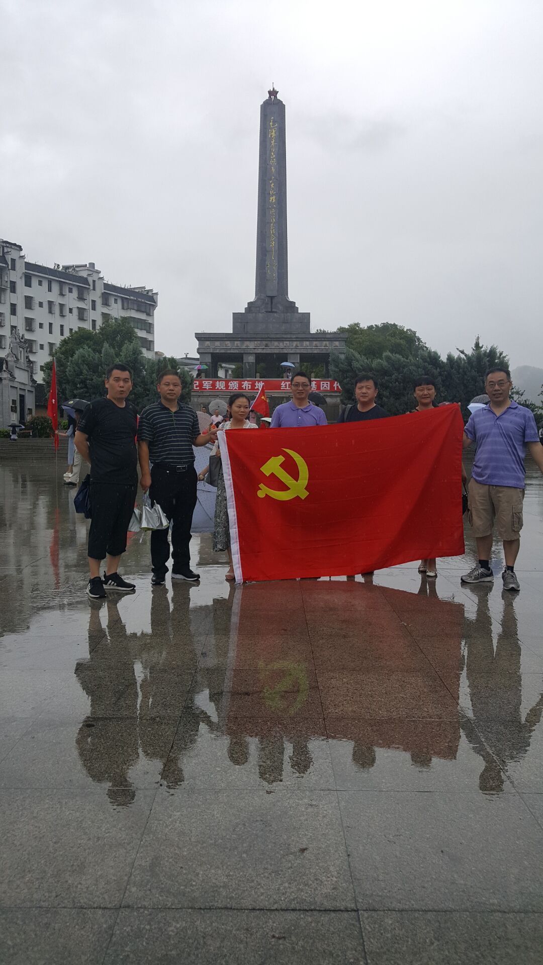支部一行人首先冒雨来到沙田镇,参观“三大纪律·八项注意”颁布纪念地。1928年4月3日,毛泽东同志在桂东沙田颁布“三大纪律·六项注意”,后发展为“三大纪律·八项注意”,是毛泽东军事思想的重要组成部分,对加强人民军队建设,密切军民关系,增强官兵团结,正确处理人民军队内部关系,起到了不可替代的作用,对我军从小到大,从弱到强,从胜利走向胜利具有不可估量的价值。大家参观了纪念碑,沙田戏台,万寿宫等景点。大家也表示一定遵照高校教师师德“红七条”以及《中国共产党纪律处分条例》严格要求自己,老老实实做人,扎扎实实做事。