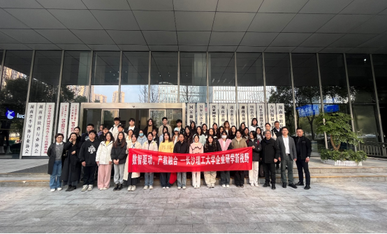 为深化产教融合、拓宽学生专业视野,2023级人力资源管理专业43名学生在李铁宁、胡建国、昝傲三位老师的带领下,于2025年12月18日下午赴长沙中电软件园开展企业研学走访活动。