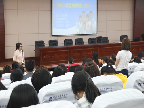 辈心理工作部成员及其他年级没有参加过培训的朋辈心理互助员。培训之前,学院学工办召开了专题会议进行培训工作布置,强调了培训的重要性,对培训考勤等做了具体安排。学院要求各班要做好培训动员、加强培训管理、严格培训考核,确保培训的顺利进行。对于因故无法上课的新生,学院合理安排批次补课,安排干部跟进考勤,保证了学院189名新生的培训听课率达到了100%。培训由经管学院心理辅导员李丽兰老师主持,培训老师分别为化学学院心理辅导员江洁、交通运输学院心理辅导员陶传谱、心理健康教育中心熊恋老师。培训内容分为朋辈心理互助工作概述、大学生常见心理问题识别与处理、朋辈心理互助员助人技巧三个专题,共计6个课时。任课老师将角色扮演、案例分析、互动提问等方式穿插其中,让学员在掌握理论知识的同时,也提升了朋辈自助与互助水平。丰富的知识,有趣的形式,使得课堂既严肃又活泼,既有意思又有用,让朋辈心理互助员受益匪浅。此外,学院还安排了团体心理辅导和案例分析体验活动,布置了撰写个人成长报告等作业,让学生强化课堂知识。 (文:李丽兰 陈赛军;图:陈赛军)