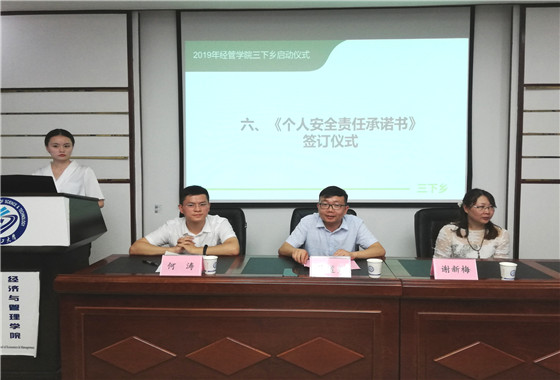 7月1日晚,经管学院2019年三下乡启动仪式于云塘校区文科楼E501顺利举行。院党委副书记涂道勇、经贸系教师谢新梅、团委书记何涛及此次三下乡各项目团队成员出席了此次启动仪式,会议由创新创业部李艳花主持。