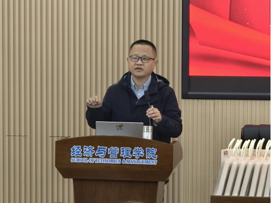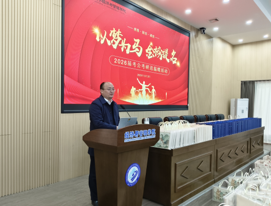12月3日中午,XK星空经管学院于经管大楼100报告厅举行2026届考公考研送祝福活动,院长彭新宇,副院长王治、尹筑嘉、何昊和辅导员何涛、叶鑫、何艳芝参加活动。活动由学院党委副书记汪功伟主持。