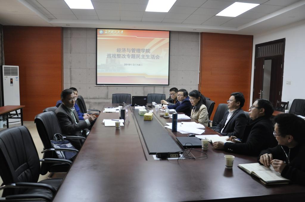 按照学校《关于召开二级党组织做好巡视整改工作专题民主生活会的通知》安排,3月14日上午9:00,经济与管理学院党委在文科楼C-502召开了巡视整改工作专题民主生活会,校领导谈传生副校长、督查监督组孔凡志副处长莅临会议指导,学院党委班子成员参加(在国外学习的彭新宇副院长作书面批评报告)。同时,会议还邀请了党外院领导张新华副院长列席,会议由院党委书记王宏主持。