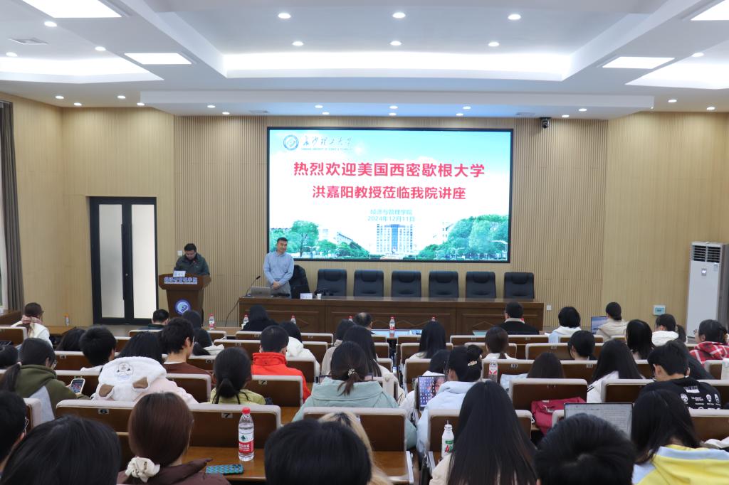 2024年12月11日下午,美国西密歇根大学终身职教授、博士生导师洪嘉阳应邀在经管大楼100报告厅主讲金岭学术大讲堂2024年第32期,主讲题目为“Is China’s Capital Liberalization Policy Effective”(中国资本自由化政策的有效性)。院长彭新宇、副院长王治、尹筑嘉出席,120余名师生参加了本次讲座,讲座由王治主持。