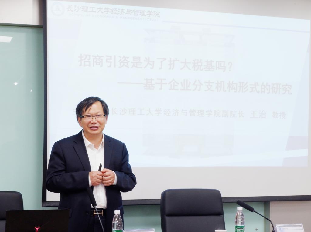 2021年4月29日上午9点,重庆大学经济与工商管理学院刘斌教授应我院邀请,在金盆岭校区七教212进行了“招商引资是为了扩大税基吗?--基于企业分支机构形式的研究”的学术讲座。经管学院副院长张新华教授、计财处副处长郑永生副教授、部分老师以及80余名硕博士研究生参与了本次讲座。本次讲座由经管学院副院长王治教授主持。