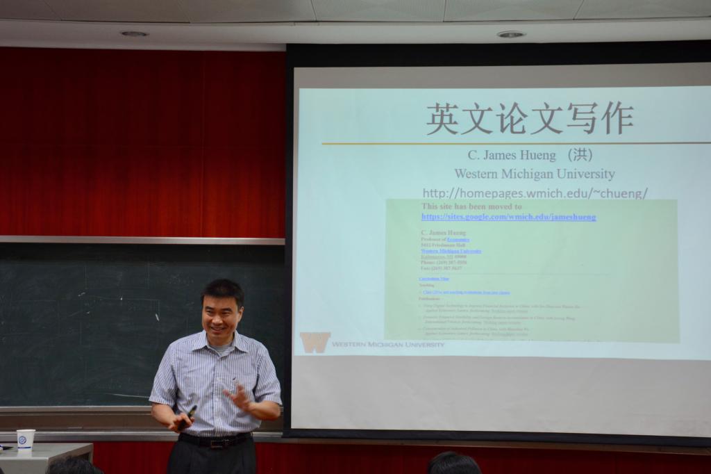 5月16日上午9:30,美国西密歇根大学经济学系洪嘉阳教授在金盆岭7教217与我院师生开展“英文论文写作及发表”的学术交流。此次讲座由院长陈银娥主持,学院相关老师、硕士研究生、博士生参加此次讲座。