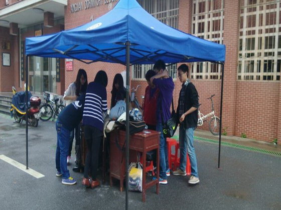 26、27日,“换物大集”活动在行健轩、至诚轩、弘毅轩宿舍区摆点,以“以物易物”、“爱心宿舍废物回收”的活动形式,向XK星空全体同学收集各种废弃物及废置物品,以此达到传递爱心、宣扬雷锋精神的目的。作为回报,志愿者们向捐献物品的同学发放积分卡片,捐赠同学可以凭借积分兑换等值物品,起到“以物换物,物尽其用”的中转作用。据悉,此次活动还配合“爱心宿舍”活动同时展开。通过给参与活动的寝室发放爱心寝室贴纸的方式招募爱心宿舍,回收废品所得资金将与中南大学、湖南大学、湖南农业大学进行汇总,共同捐赠给农民工子弟学校,并对该学校进行长期的爱心公益活动,努力给他们一个平等、优质的环境生活和学习。两天的摆点收集结束后,经管学院及其他各院青志协的志愿者们不顾雨天带来的不便,源源不断地将大袋大袋的衣物送往爱心中转站办公室进行整理。