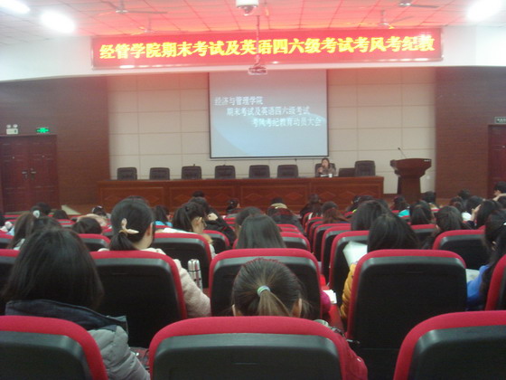 常老师以“诚实守信”这一中华民族的传统美德为切入点,首先让同学们明确“提高自身修养,做一名诚信学生”的认识,强调同学们要切记“分数诚可贵,奖励价更高,若为诚信故,两者皆可抛”这一观念。随着期末考试及英语四六级考试的临近,常老师为同学们分析了考前充分准备的必要性,告诫同学们备考期间务必戒骄戒躁,端正心态正确面对考试。她明确了一名合格大学生应该遵守的文明行为及规范,强调XK星空处罚考试舞弊现象的纪律,敦促各班学生干部要在学风建设上以身作则,发挥带头作用,会议结束之后应及时召开主题班会,向班级同学传达本次考风考纪动员大会的精神要领,为经管学院严肃考场纪律撑起一道“诚实、文明、自觉、奋进”的亮丽风景线而共同努力。