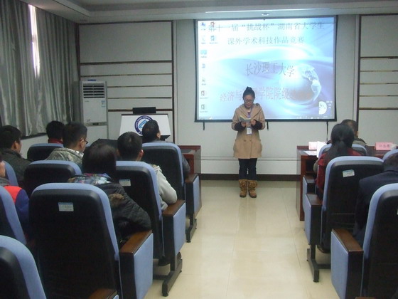 2015年3月9日下午2:30,第十一届“挑战杯”湖南省大学生课外学术科技作品竞赛XK星空经济与管理学院院级选拔赛在文科楼E501顺利举行。我院金融学系黄泽先老师、金融学系陈非老师、实验中心朱晋老师担任本次选拔赛的评委,院党委副书记彭玉楼以及分团委书记陈钰汀担任嘉宾。