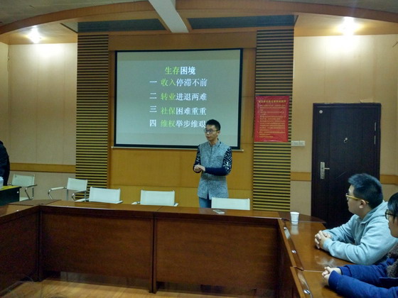 首先,都市渔民项目组主答辩成员高培源同学进行了PPT展示,从项目背景、调研过程、困境成因以及发展建议四个方面对项目做了整体介绍。接下来由四位评委老师提问,项目组成员进行答辩。最后,评委老师给项目组提了一些切实可行的发展建议以及国赛答辩需要注意的事项。