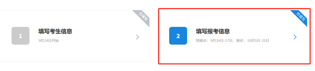 (考生信息可以在预报名前一周填写好,报考信息则是在预报名的时候才可以填写