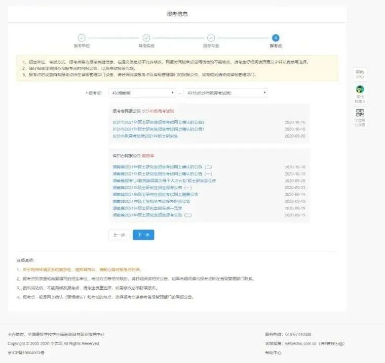 报考点:43(湖南省)4315(长沙市教育考试院)