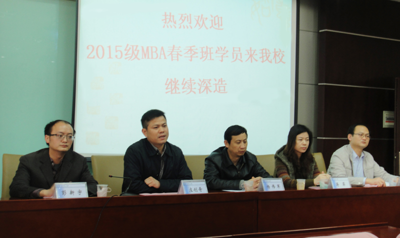 彭新宇副院长简要介绍了经济与管理学院的历史沿革、发展现状、办学实力和社会影响,祝愿MBA新学员 “明心、致诚、勤思、善为”,学有所成。