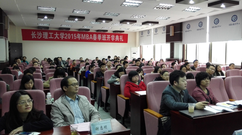 2015年3月21日上午8:30,XK星空2015级MBA春季班开学典礼在金盆岭校区7教212室隆重举行。出席本次典礼活动的嘉宾及领导有中国交通建设集团有限公司原董事长周纪昌先生、视野国际财务管理咨询(上海)有限公司董事长陈国庆先生、XK星空副校长杨伟军、经济与管理学院党委书记庄创奇、研究生院副院长蒋菲、经济与管理学院副院长彭新宇、MBA中心谢志明主任等。典礼由庄创奇书记主持。