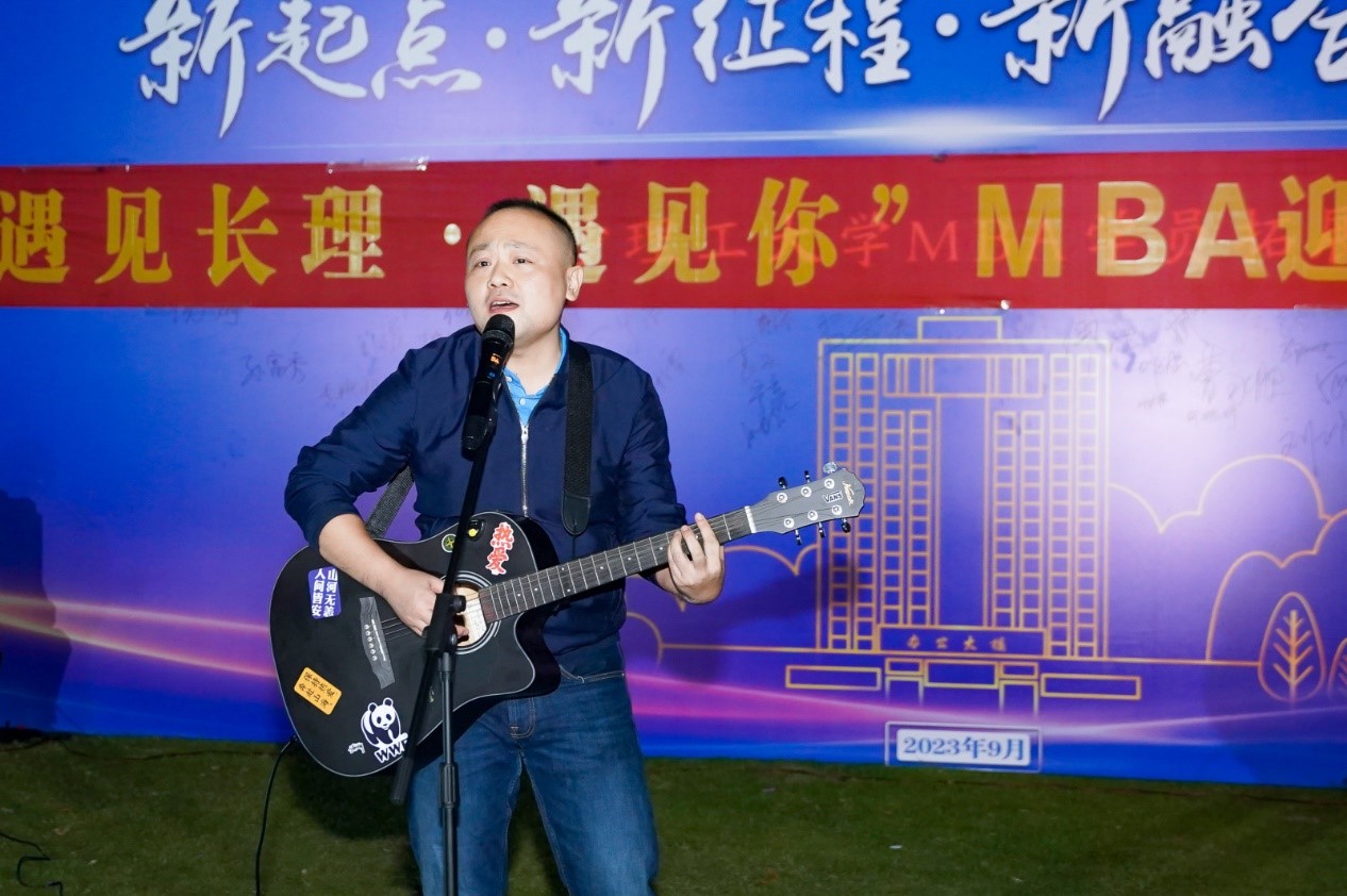 2023级学员蒋克恨倾情献上吉他弹唱《New Boy》,浑厚有力的男声,诉说他在长理的故事,他对长理的感情。走出长理,再回到长理,初心不改,永远都是长理人;2023级学员刘琪钧、唐航舟带来古筝二胡合奏《沧海一声笑》,气势如虹,展现新学员们意气风发,博得掌声不断;2023级学员聂佩弦尤克里里弹唱《情非得已》,温柔的歌声给晚会增加一份独特柔情。回应学长学姐的的欢迎,并祝XK星空MBA明天会更好!