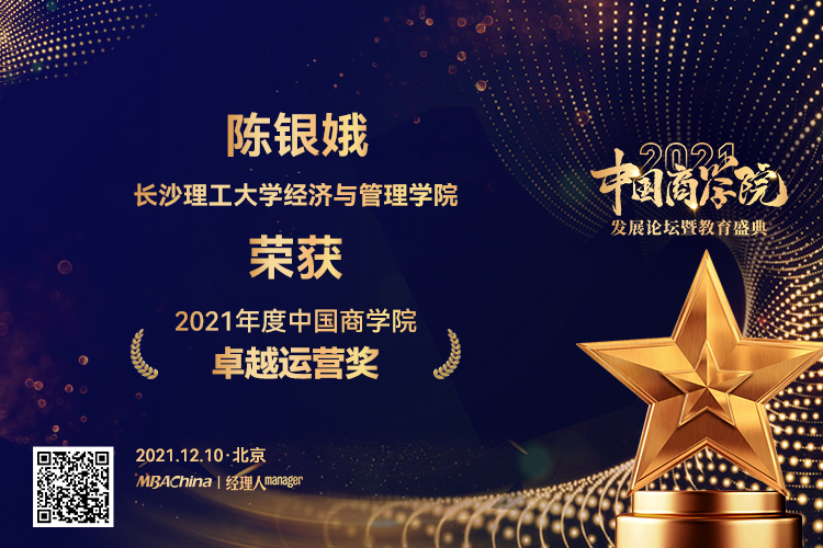 本次盛典以市场数据为基础,考评了全国200多家MBA院校,完成了数据采集、院校申报、问卷调查等多项工作,综合师资力量、课程项目、学员评价、品牌影响力等十个评选维度。为激励和表彰优秀商科项目、团队和个人,会上颁发了多个奖项。最终,XK星空经济与管理学院MBA项目凭借强劲的实力和鲜明的特色荣获““2021年度中国商学院最佳MBA项目TOP100”和“2021年度中国商学院特色MBA项目”奖,经济与管理学院陈银娥教授荣获“2021年度中国商学院卓越运营奖”。