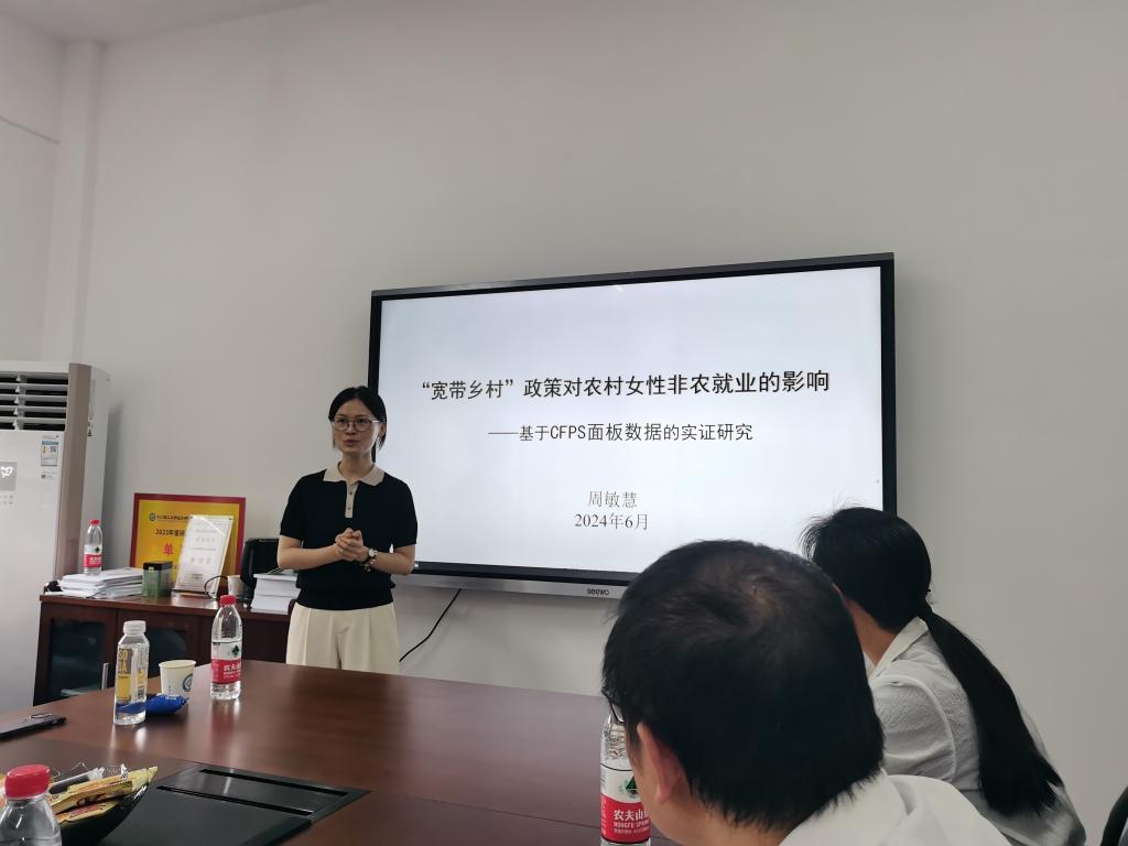 2024年6月25日下午,应我院邀请,对外经济贸易大学政府管理学院公共经济管理系讲师周敏慧老师为我院师生做了题为“宽带乡村”政策对农村女性非农就业的影响的学术讲座。院长彭新宇、经贸系系主任陈洁出席,学院师生30余人参加此次讲座。讲座由学院副院长何昊主持。