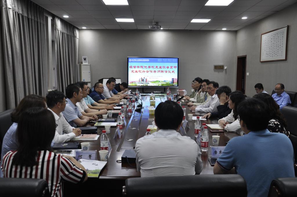 5月26日下午5:30,经济与管理学院在文科楼D202举行了中国电建集团优秀校友座谈会暨研究生校外合作导师聘任仪式。中国电建集团财务金融部主任兼基金公司董事长康定乾(电财8401)、中国电建集团租赁公司总经理沈沉(会计8703)、中国电建水电十局总会计师罗朝国(财会8005)等13位担任总会计师的校友参加了座谈会,副校长谈传生、学校校友总会会长洪源渤、原副校长叶泽、校友中心副主任郑延恒、总会秘书长张美红及经管学院全体院领导出席座谈会。座谈会由院党委书记丁丹主持。