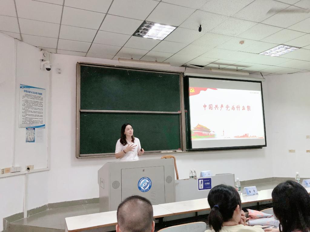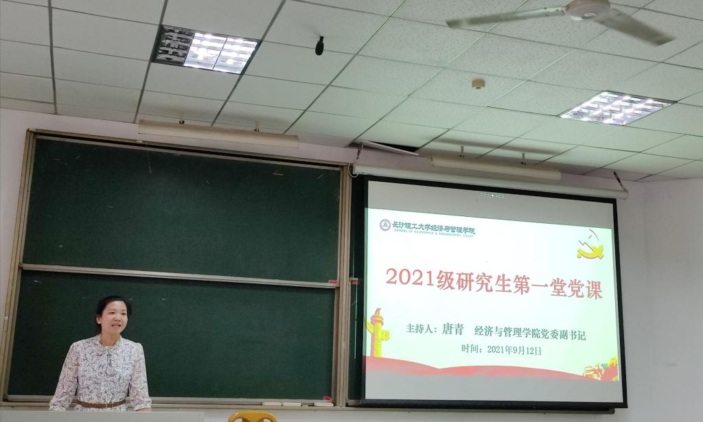 9月12日下午2:30,经济与管理学院2021级研究生在金盆岭校区6教110听党委书记丁丹讲“第一堂党课”,本次党课主题为“中国共产党为什么‘能’”。院关工委陈均杰、研究生辅导员陈莹及全体2021级研究生参加,院党委副书记唐青主持。