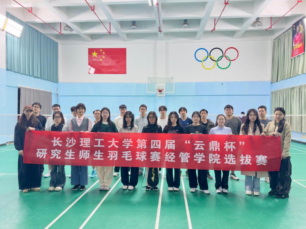 11月25日晚,经济与管理学院第四届“云鼎杯”师生羽毛球选拔赛在金盆岭校区体育馆举行。本次比赛由经管学院研会文体部筹备组织,吸引了20余名研究生报名参与。