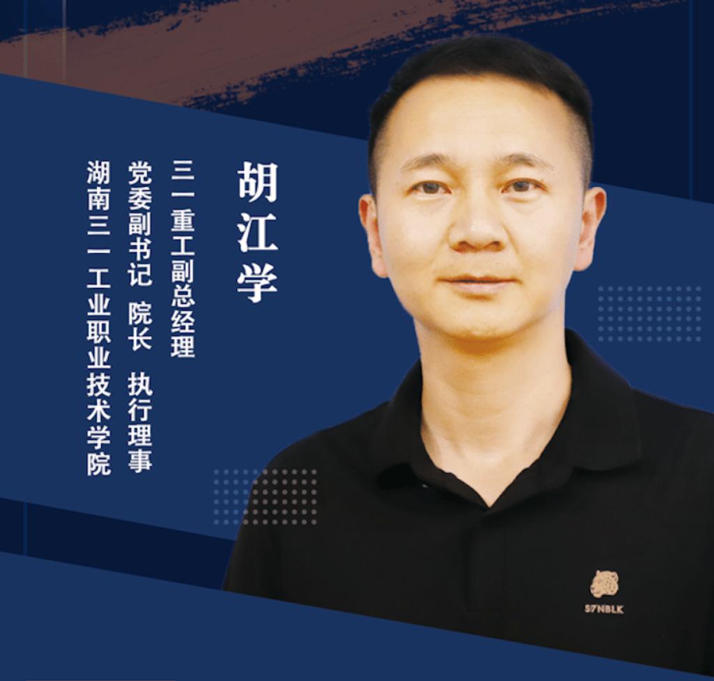 胡江学,副教授,现任三一集团人力资源总部副本监,三一重工副总经理,湖南三一工业职业技术学院党委副书记、院长、执行理事。曾在高校教育教学一线工作多年,获湖南省教学成果特等奖。大力推动学校“三全育人”综合改革,提出了“六位一体”全员、“三年一贯制”全过程、“三个特别”全方位育人的人才培养创举,取得了较好的育人效果。