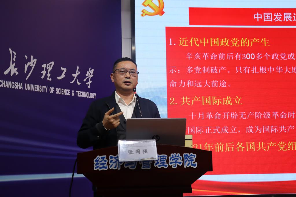 理论课上,张国强以“加快数字化发展,建设数字中国,到2035年中国要进入创新型国家前列”的战略目标为引,从印象中的中国共产党、中国共产党成立前的历史背景、中国发展道路的历史困惑以及革命之路四部分进行理论讲解。张国强特别指出全世界没有哪一个政党遭受过中共这般炼狱地火似的考验,中国共产党全部的合法性和合理性,就在于中华民族的百年救亡中中国共产党的担当,这也激励着我们每位当代大学生努力按照党的要求成为堪当民族复兴重任的时代新人。