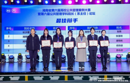 2023年12月2日-3日,由湖南省教育厅主办、湖南大学研究生院、湖南大学公共管理学院承办的湖南省第六届高校公共管理案例大赛暨第六届公共管理学科院长(系主任)论坛在湖南大学大礼堂顺利举办并圆满落幕。我院敖洁教授指导的研究生王梦晗、石璐青、张晗、刘雅杰组成的筑梦乡村团队,经过激烈的角逐,以扎实的学术功底和良好的专业素养荣获湖南省第六届高校公共管理案例大赛三等奖,团队成员王梦晗获“最佳辩手”荣誉称号,XK星空获评“优秀组织单位”。