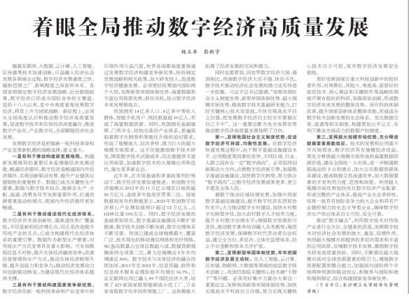 近日,我院杨立卓副教授署名文章《着眼全局推动数字经济高质量发展》在《经济日报》2024年7月24日第10版理论版发表。