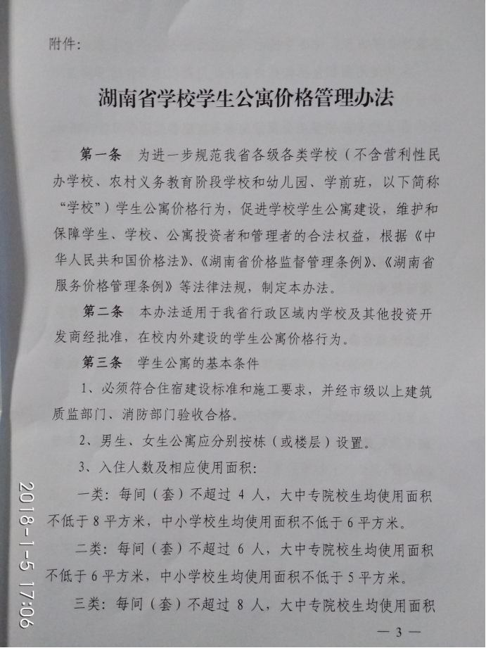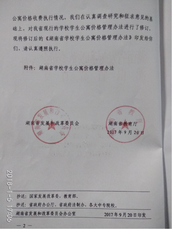 湖南省发展和改革委员会湖南省教育厅 关于印发《湖南省学校学生公寓价格管理办法》的通知
